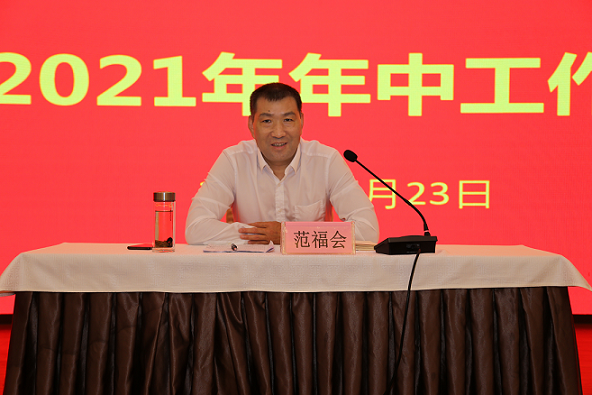 范福会在讲话中肯定了各单位上半年面对困难所做出的努力和成效,从新环境下集团面临的发展形势、集团今后的发展方向进行了总结,并就统筹做好下半年工作提出工作要求。他强调,一要认清形势,精准定位,提高科研能力,增强核心竞争力,努力追赶超越,推动集团高质量发展再上新台阶。二要认真学习贯彻习近平总书记“七一”重要讲话精神,认真思考科技创新、产业升级、企业发展等问题,把从中发现的好经验、好做法,形成措施办法运用到企业改革发展中。三要着力提升人才建设水平,继续加大高层次人才引进和培养力度。四是着力提升纪律建设水平,严守政治纪律、廉洁纪律。五是着力提升领导干部素质及管理水平,勇于干事创业、勇挑重担,进一步提升向心力、凝聚力,激发干事创业动力,为集团高质量发展作出贡献,以优异的成绩庆祝中国共产党成立100周年。