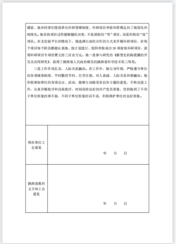 心博app工会委员会 关于陕西省教科文卫体系统五一巾帼标兵(岗) 推荐材料的公示