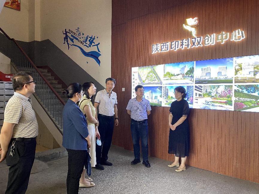 【概要描述】西安市创业创新发展协会会长董小泰、秘书长姚姗等一行,赴陕西省印刷科学技术研究所有限责任公司调研印科孵化基地建设运营情况并指导工作。