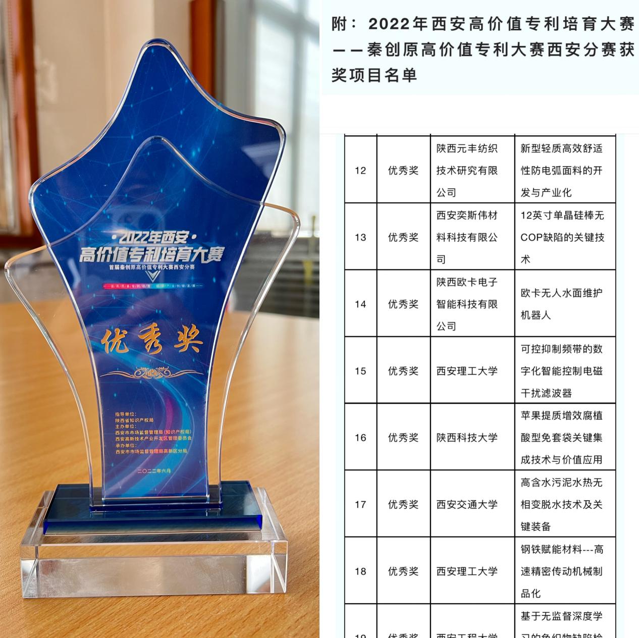 纺科院电弧防护项目获得“2022年西安高价值专利培育大赛”优秀奖