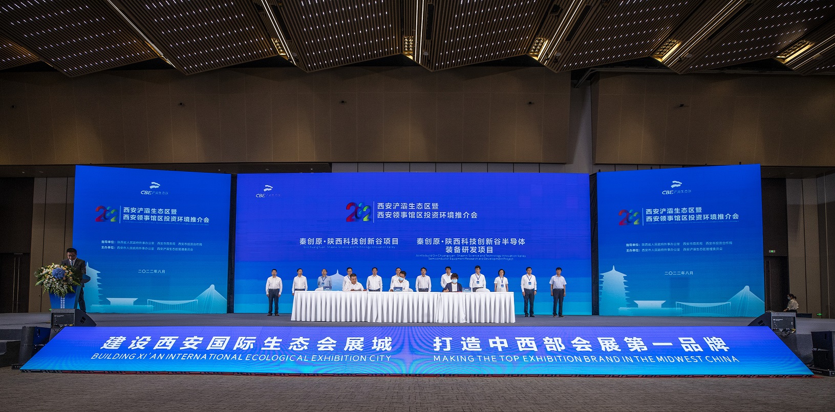 【概要描述】8月13日下午,西安浐灞生态区暨西安领事馆区投资环境推介会在西安国际会展中心举行,集团党委副书记、副总经理莫会成作为嘉宾全程鉴签,集团党委委员、副总经理刘强代表集团签约秦创原·陕西科技创新谷项目、秦创原·陕西科技创新谷半导体装备研发制造项目。