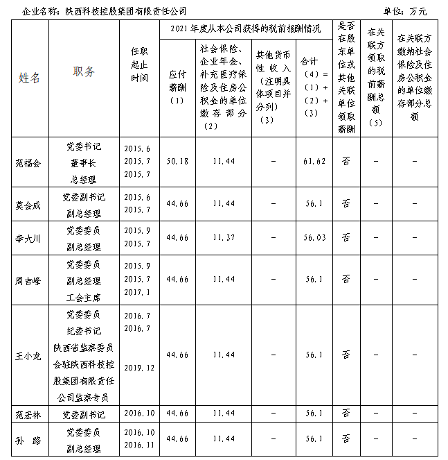 1.上表披露薪酬为我集团公司负责人2021年度全部应发税前薪酬,由陕西省科学技术厅核定。其中(1)项为集团公司负责人年度应发薪酬总额。