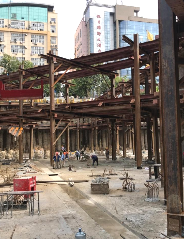 海宁市工人路商业中心城市有机更新项目二期基坑支护设计项目,基坑开挖深度为13m,基坑侧壁安全等级为一级。项目地层为大厚度软土地层,具有强度低、灵敏度高等特点,基坑紧贴已有建筑,地下管线多,基坑变形控制难度大。设计团队采用灌注桩与三轴分离式水泥搅拌桩咬合为竖向支护结构;采用二道钢筋混凝土支撑与预应力装配式钢支撑为水平支撑结构。支护体系中采用的预应力鱼腹桁架支撑系统,缩短基坑开挖施工工期,对主体结构影响小,拆撑换撑较易,灵活方便,取得了良好的技术经济效益和社会效益。