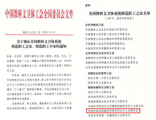 喜报!集团公司工会荣获全国教科文卫体系统“模范职工之家”称号