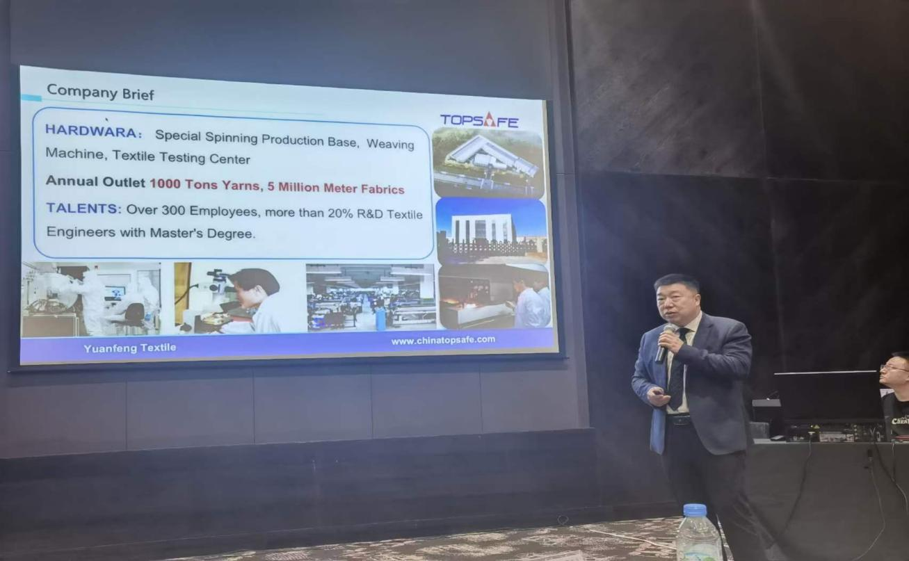 推介会上,苏利涛从公司发展历程、产品应用领域、个体防护领域所获荣誉、研发生产实力及未来发展战略等方面介绍了元丰公司,展示了公司多年来坚持“走出去”战略在国际市场的品牌影响力。