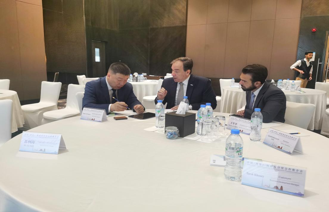 推介会中,苏利涛同受邀参会的阿联酋重要客户深入沟通交流,寻求更多元化的合作方式。