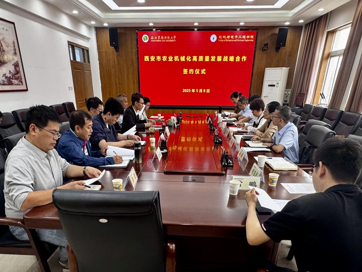 为进一步推动西安市农业机械化高质量发展,陕西省农业机械研究所有限公司、西北农林科技大学机械与电子工程学院与西安市农机监理与推广总站于5月8日在杨凌示范区联合举办“西安市农业机械化高质量发展战略合作签约仪式”。三方将围绕技术创新、成果转化、人才培养等领域深化合作,共同构建农业机械化发展新格局,助力西安市农业产业提质增效。