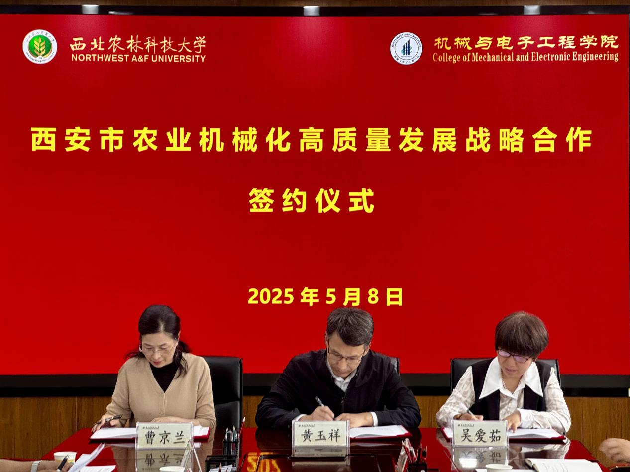 【概要描述】为进一步推动西安市农业机械化高质量发展,陕西省农业机械研究所有限公司、西北农林科技大学机械与电子工程学院与西安市农机监理与推广总站于5月8日在杨凌示范区联合举办“西安市农业机械化高质量发展战略合作签约仪式”。三方将围绕技术创新、成果转化、人才培养等领域深化合作,共同构建农业机械化发展新格局,助力西安市农业产业提质增效。